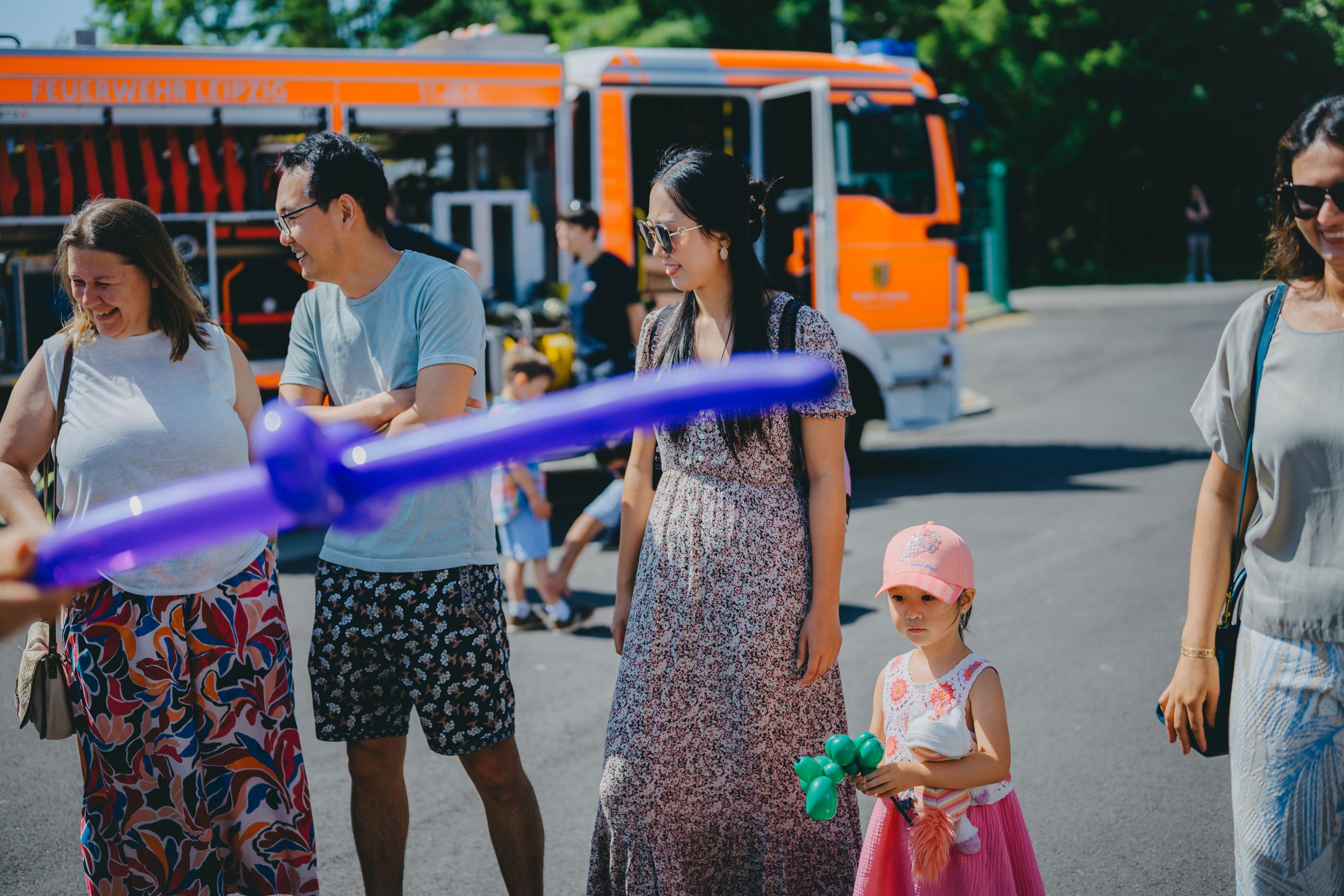 Für alle Gäste entstanden sommerliche Genussmomente durch erfrischende Drinks, eine Outdoor-Lounge, DJ-Musik sowie ein Grillbuffet mit Live-Cooking. Besonders beliebt war die Feuerwehr zum Anfassen. Ergänzt wurde das Programm durch eine Fotowand und einen Auftritt unseres Maskottchens, der viele strahlende Gesichter hinterließ.