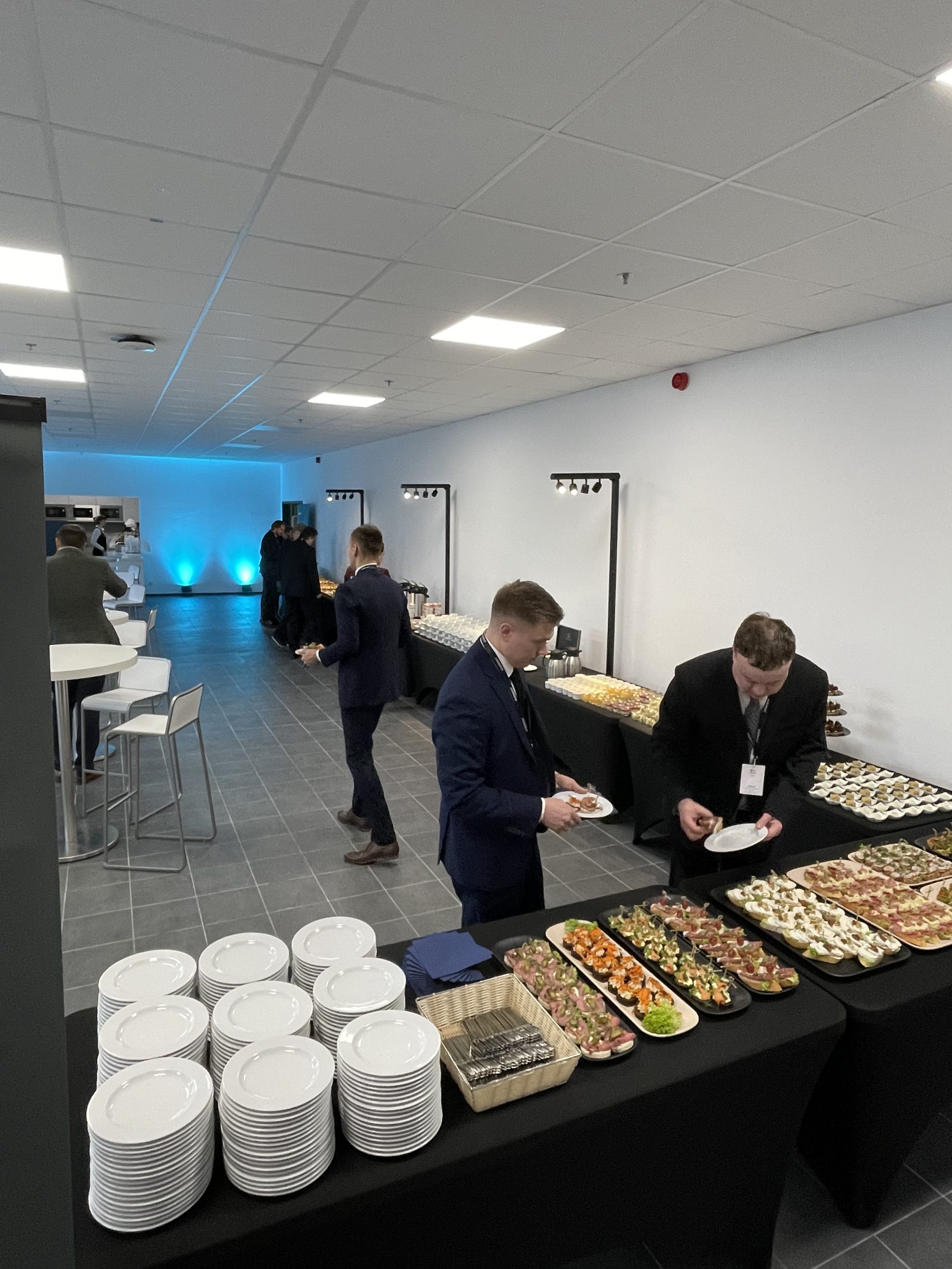 Im industriellen Umfeld entstand auf 10metern Buffetstrecke ein klar strukturiertes, hochwertiges Catering-Setup.